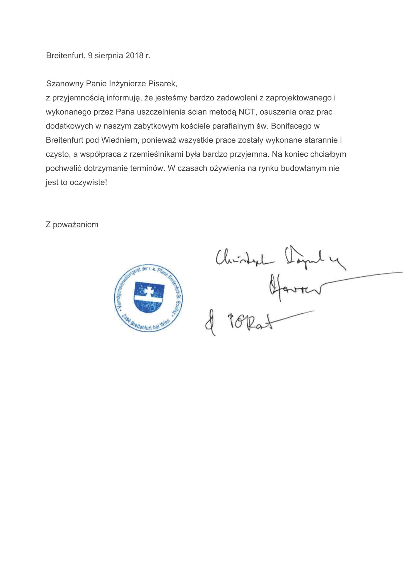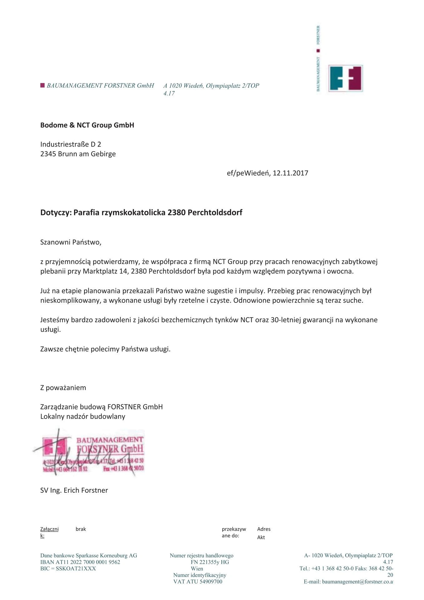 List referencyjny FORSTNER Zarządzanie nieruchomościami