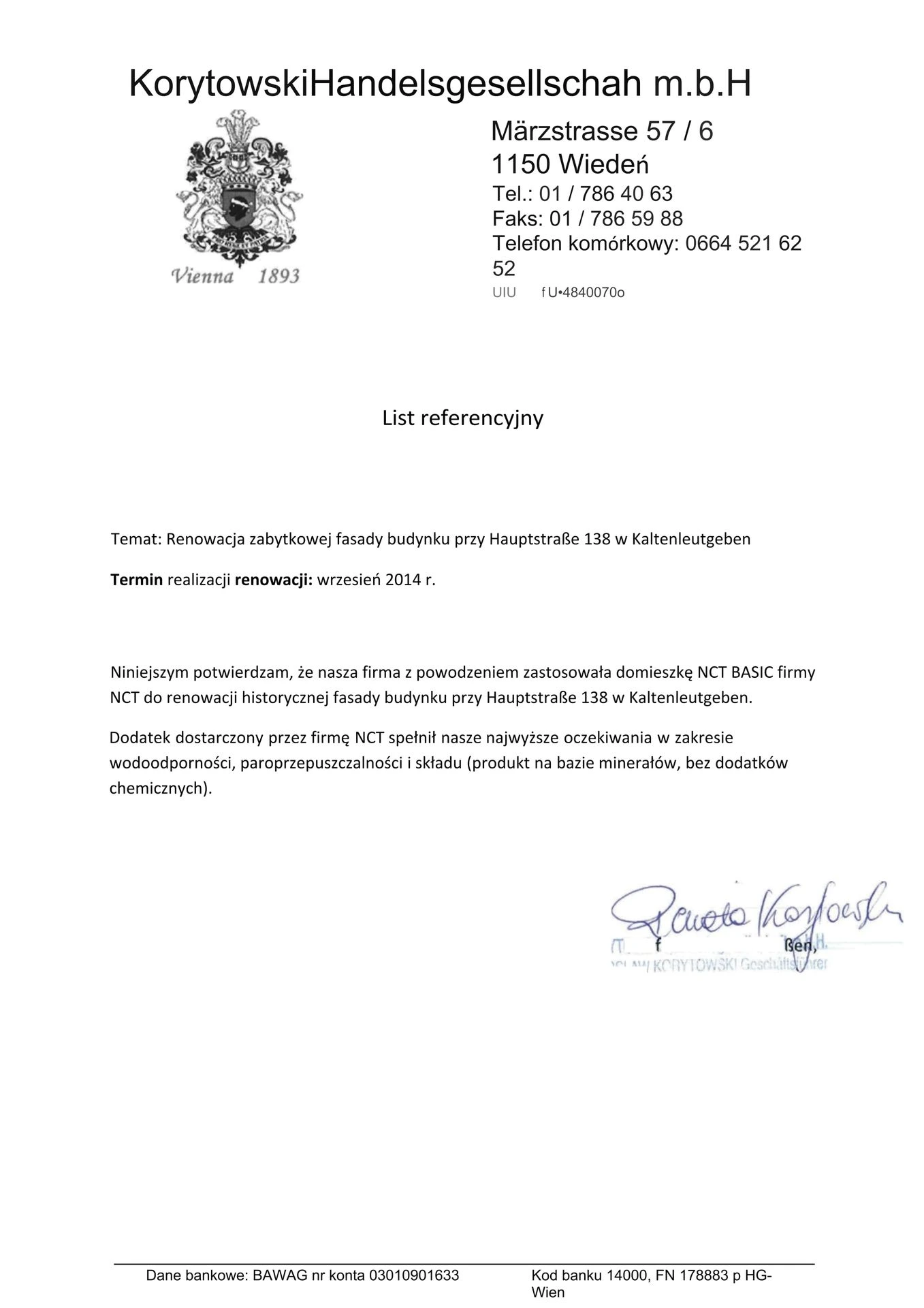 • NCT Uszczelnianie, Rüdigergasse, 1050 Wiedeń;